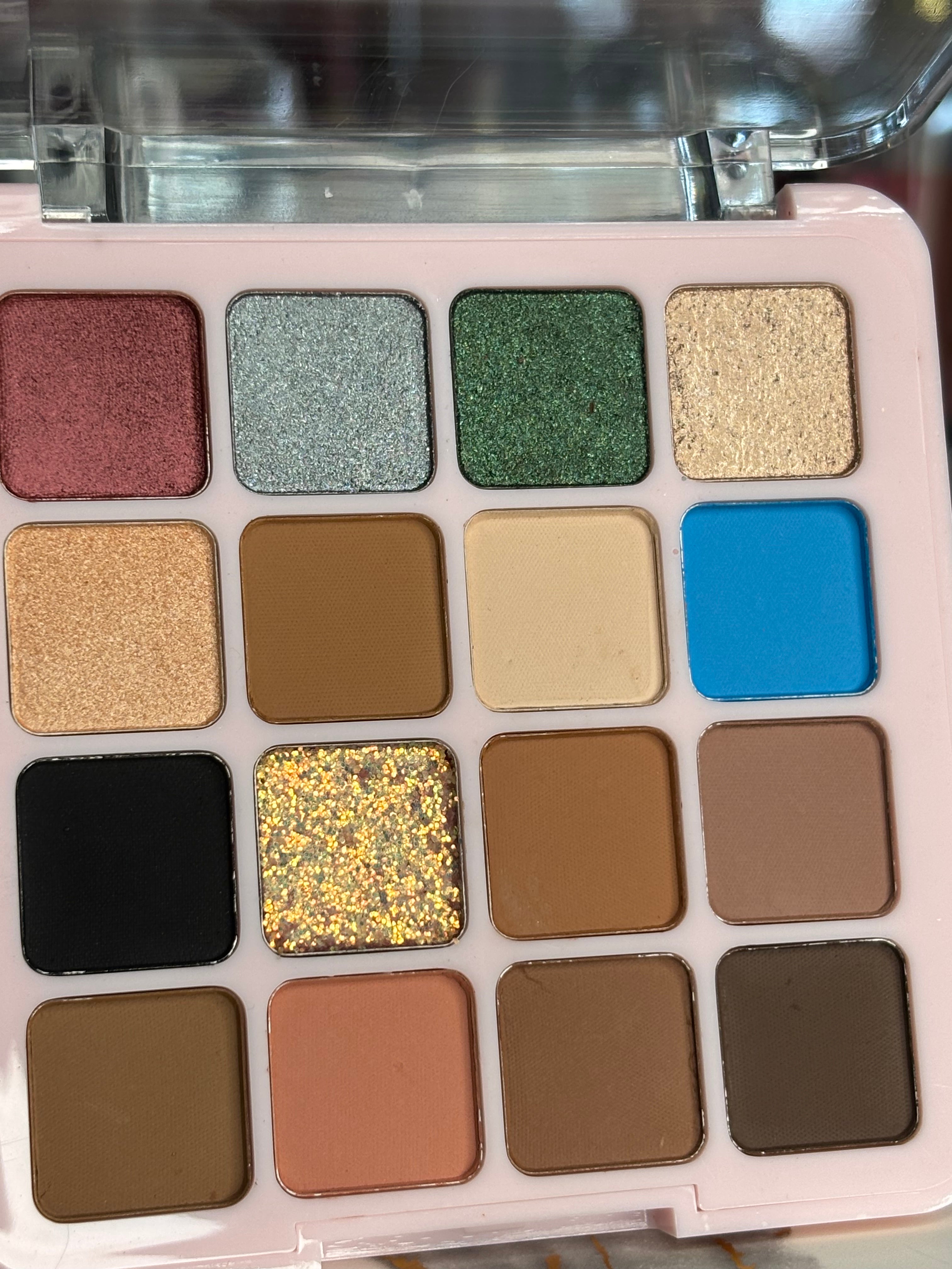 An all season Rich beautiful colors including matte, soft shimmer and gold, silver and pink glitters to help you create any eye look for any season. Formulated with extra pigment for easy blending and superb payoff.