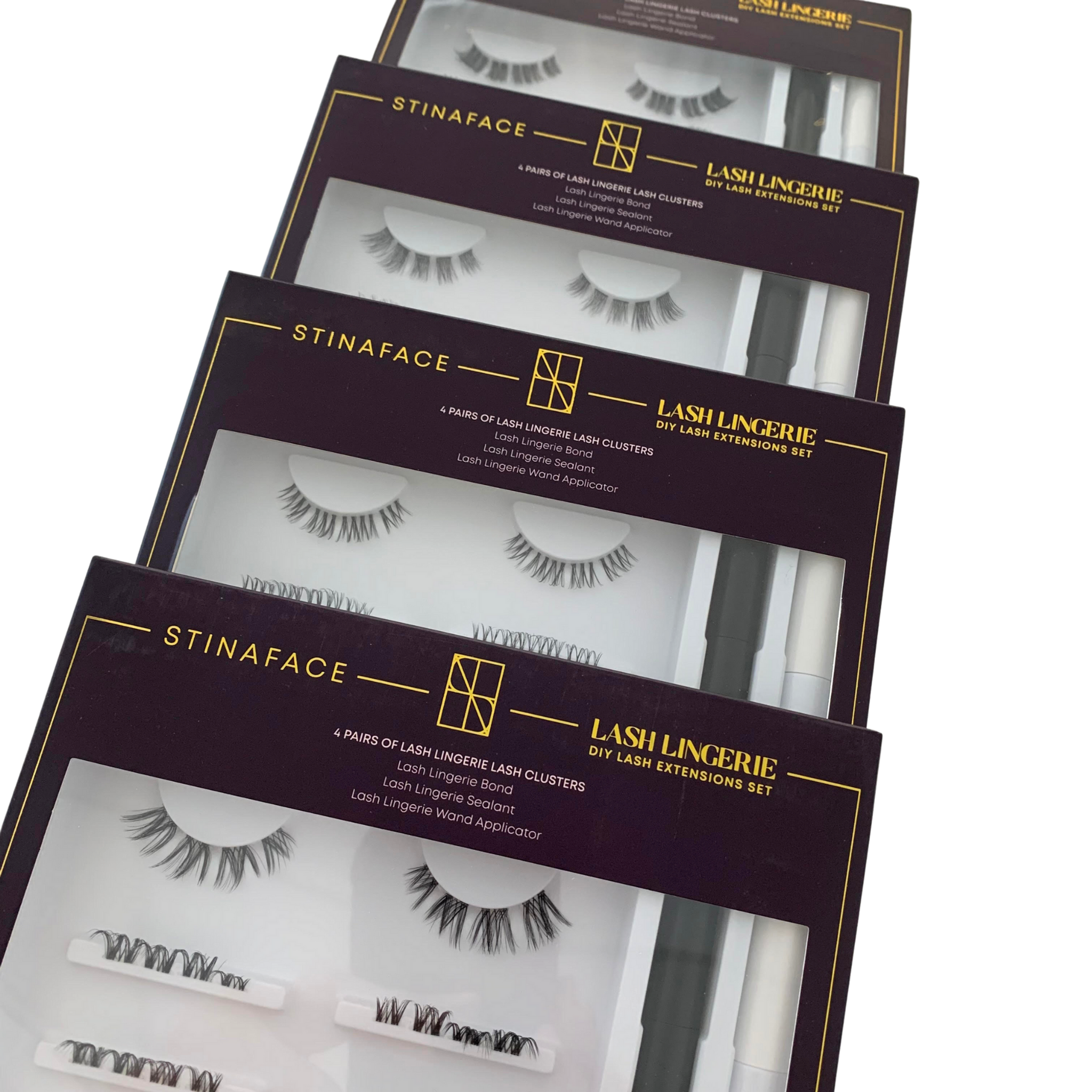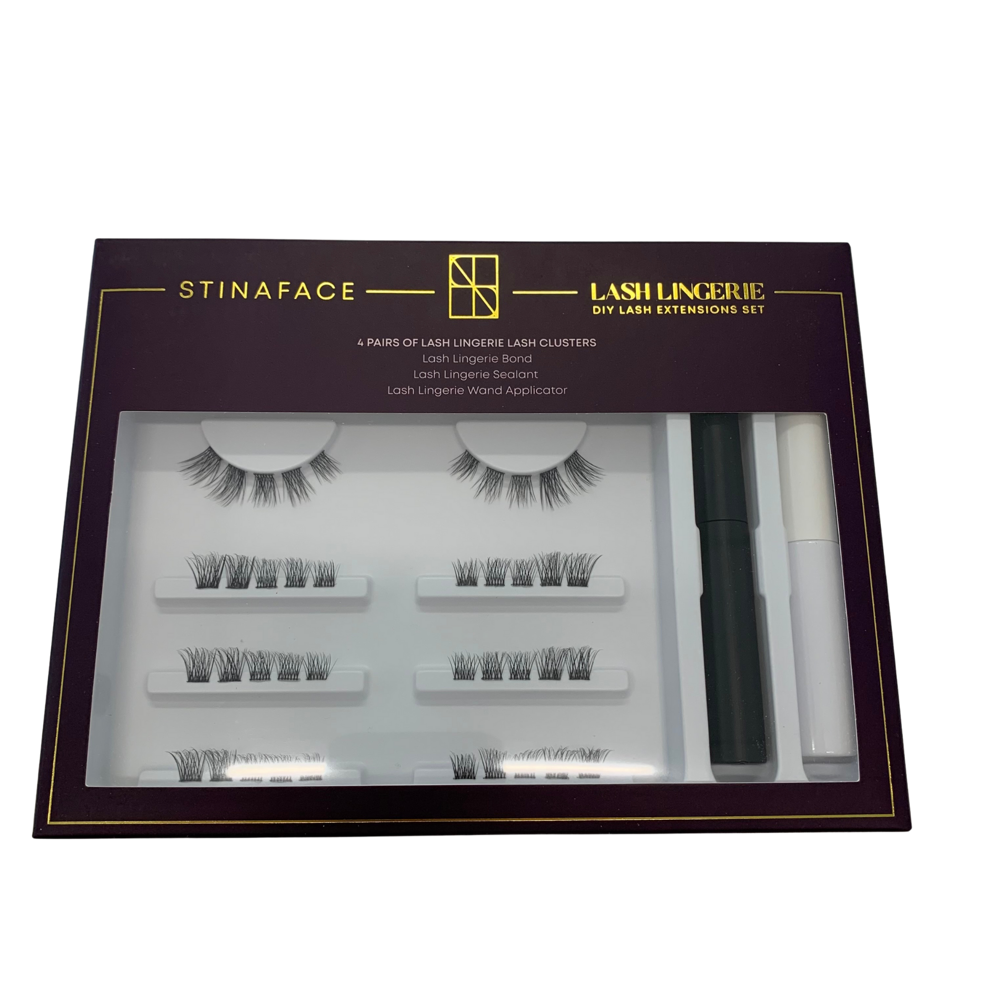 StinaFace Lash Lingerie Volume Clusters are the perfect alternative to lash extensions. Named "Lash Lingerie" because these clusters are ergonomically designed to be applied underneath and on top of your natural lashes. Leaving no trace of a band or adhesive. A makeup artist trick used for decades now available to the public. When applied properly Lash Lingerie lasts up to 5 days.
