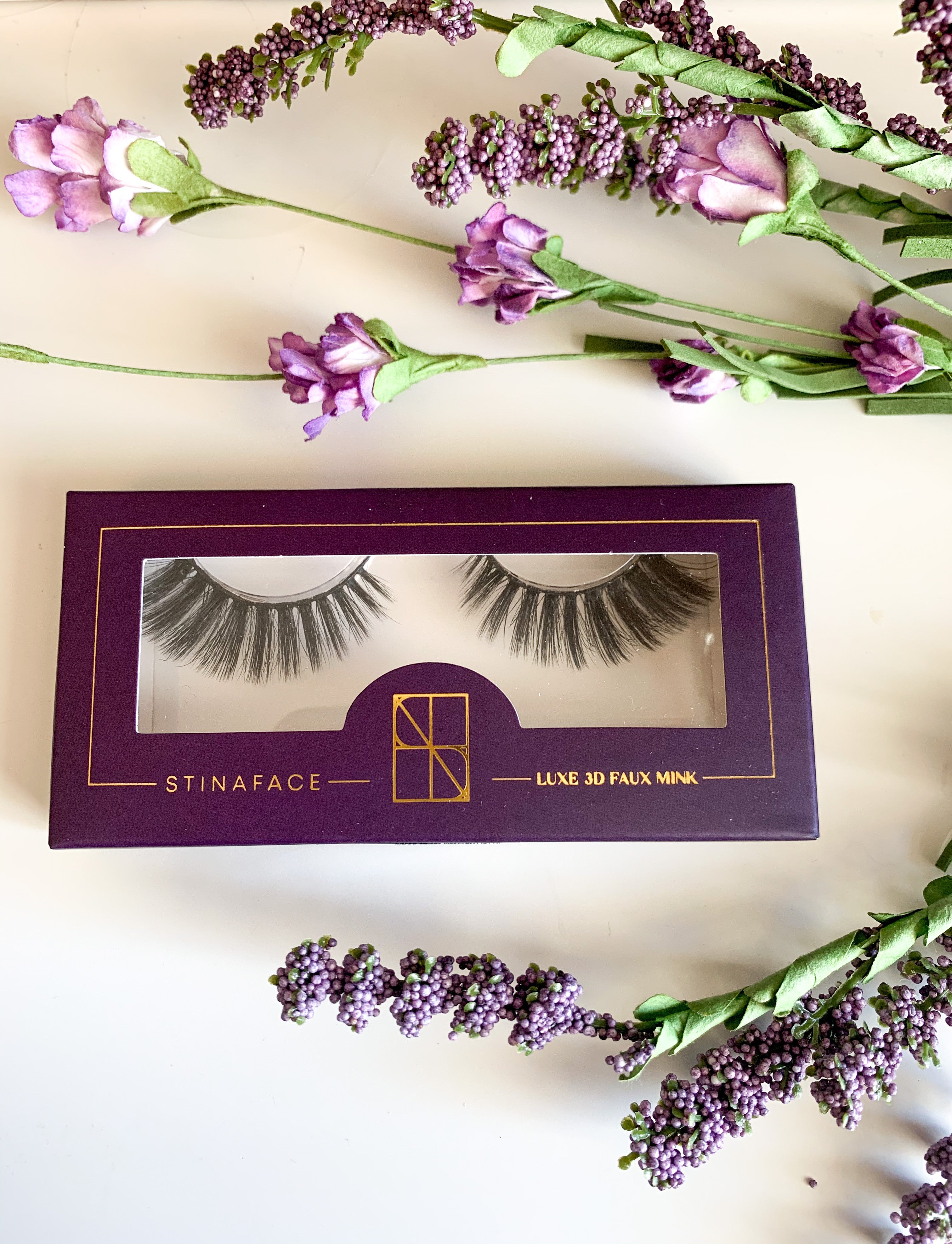 StinaFace luxe 3D faux mink lashes are made from vegan fibers and provide a flexible band. Lashes can be worn 20+ times with proper care.