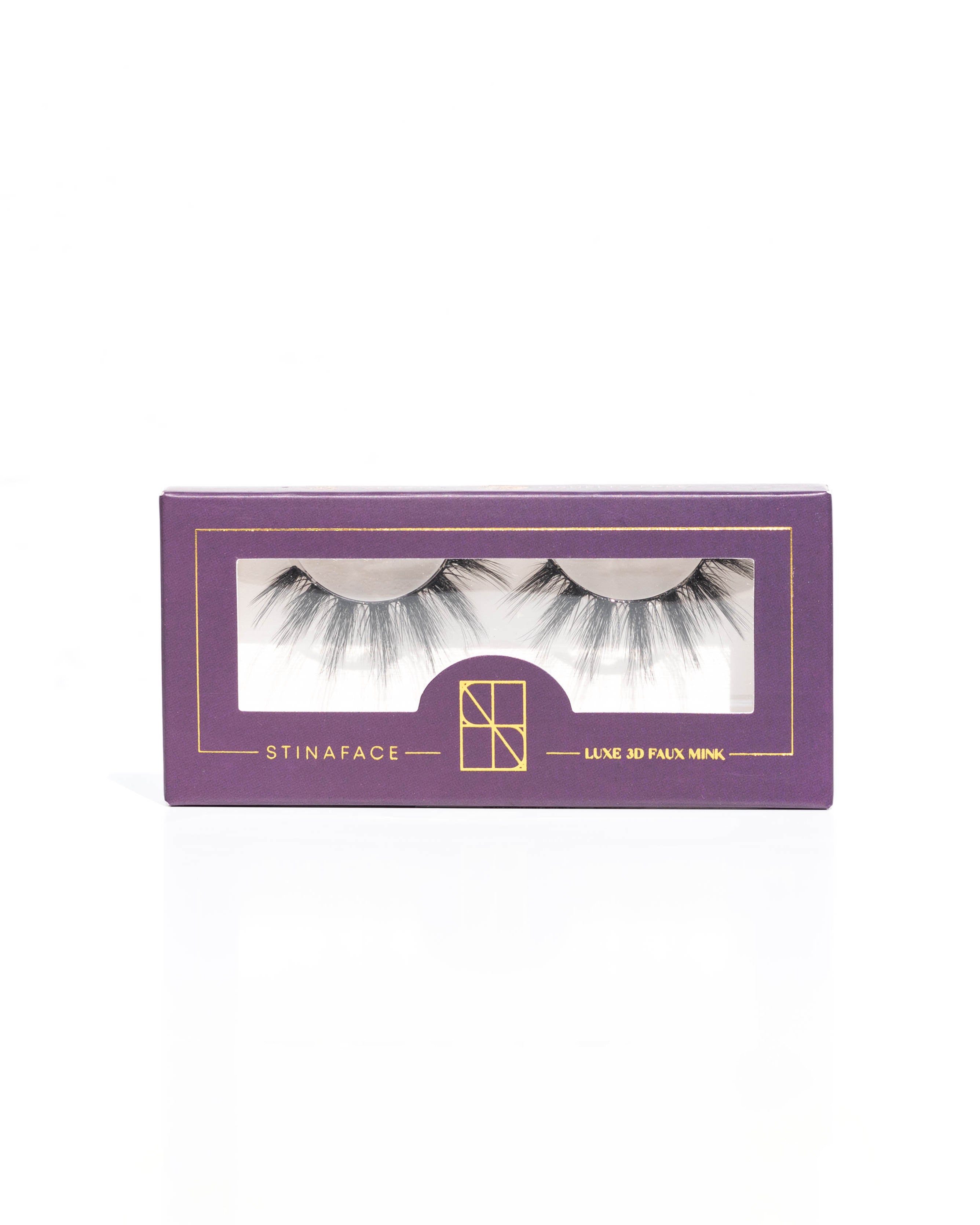 StinaFace luxe 3D faux mink lashes are made from vegan fibers and provide a flexible band. Lashes can be worn 20+ times with proper care.