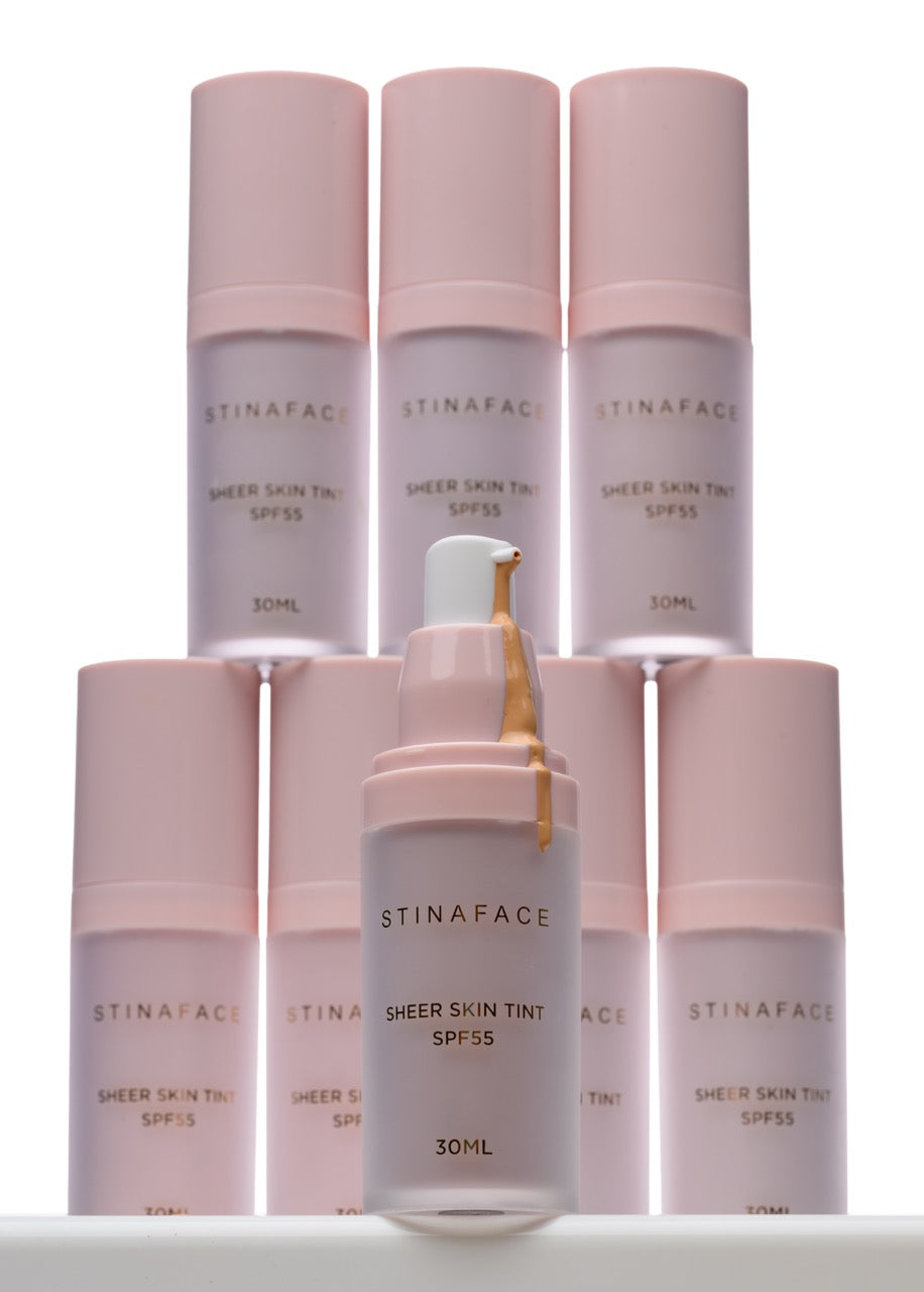 Your skin, but glowier. The StinaFace Sheet Skin Tint SPF 55 is a lightweight, breathable formula that delivers buildable, glowy coverage while protecting skin with broad-spectrum SPF 55.